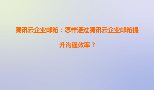 腾讯云企业邮箱:智能化工具助力企业高效沟通