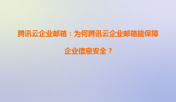 腾讯云企业邮箱:为何能保障企业信息安全?
