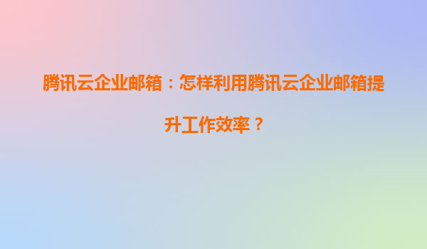腾讯云企业邮箱:打造高效办公新体验