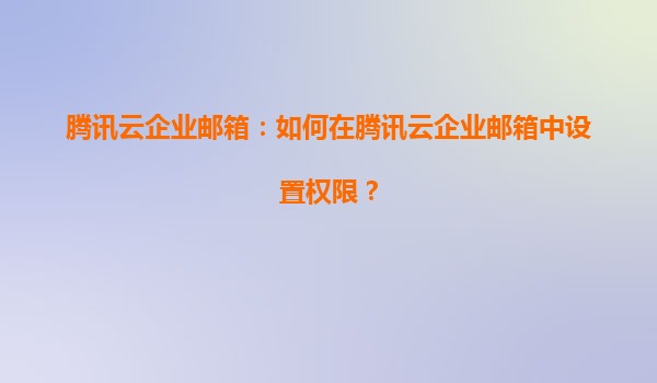 腾讯云企业邮箱:如何在腾讯云企业邮箱中设置权限?