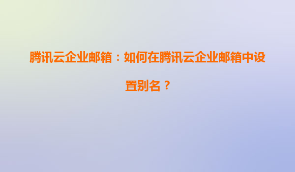 腾讯云企业邮箱:如何在腾讯云企业邮箱中设置别名?