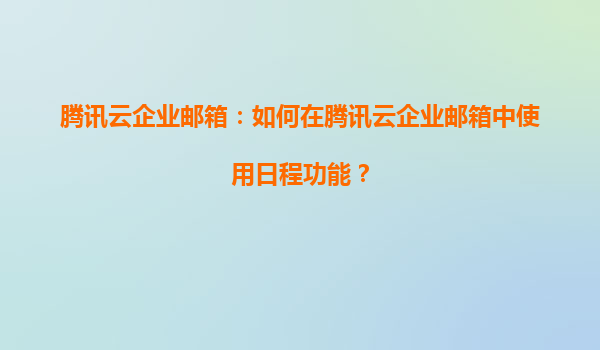 腾讯云企业邮箱:如何在腾讯云企业邮箱中使用日程功能?