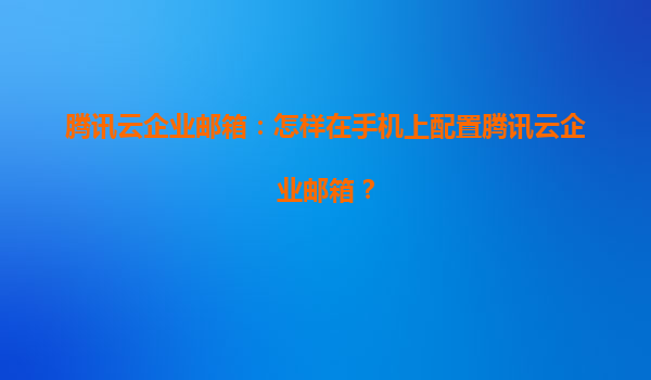 腾讯云企业邮箱:手机端配置指南与企业高效办公的得力助手