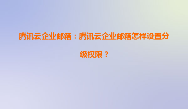 腾讯云企业邮箱:如何高效设置分级权限?
