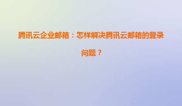 腾讯云企业邮箱:高效解决登录问题,助力企业无忧沟通