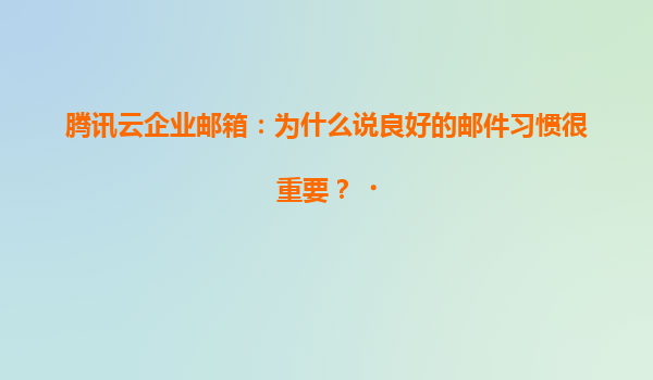 在数字化办公时代,企业邮箱不仅是信息传递工具,更是企业品牌形象与运营效率的核心载体。腾讯云企业邮箱凭借其安全稳定的技术架构与智能化功能,为现代企业提供了培养良好邮件习惯的最佳实践平台。
