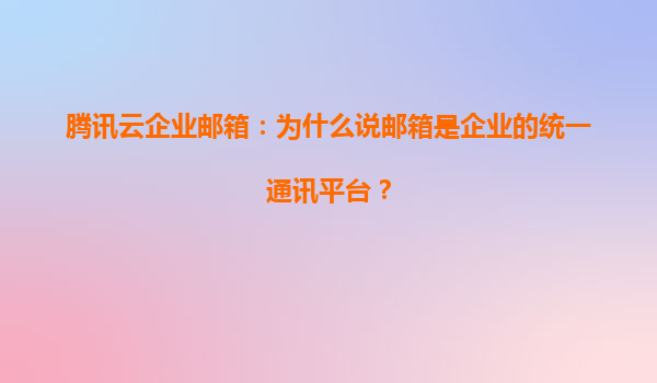 为什么企业邮箱是企业的统一通讯平台?