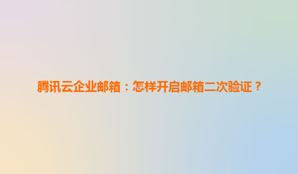 腾讯云企业邮箱:如何开启邮箱二次验证提升账户安全