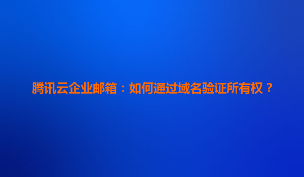 腾讯云企业邮箱:如何通过域名验证所有权?