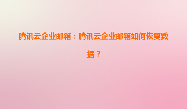 一、腾讯云企业邮箱数据恢复方法