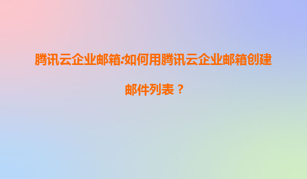 腾讯云企业邮箱:如何用腾讯云企业邮箱创建邮件列表?