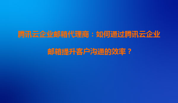 腾讯云企业邮箱代理商指南:如何通过腾讯云企业邮箱提升客户沟通效率?
