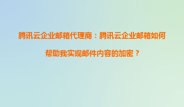 腾讯云企业邮箱:企业邮件安全加密解决方案