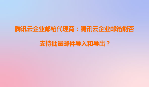 腾讯云企业邮箱代理服务解析:批量邮件导入导出功能详解
