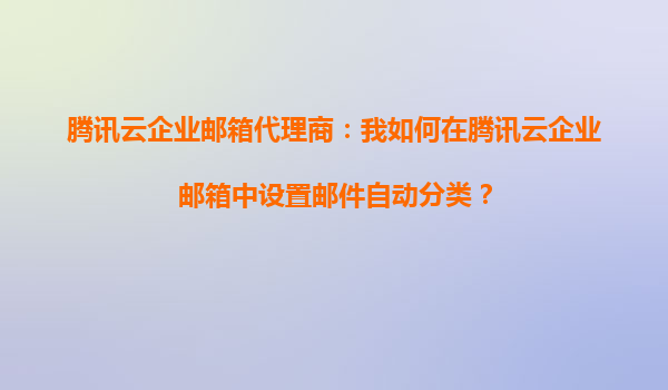 腾讯云企业邮箱代理商指南:如何设置邮件自动分类