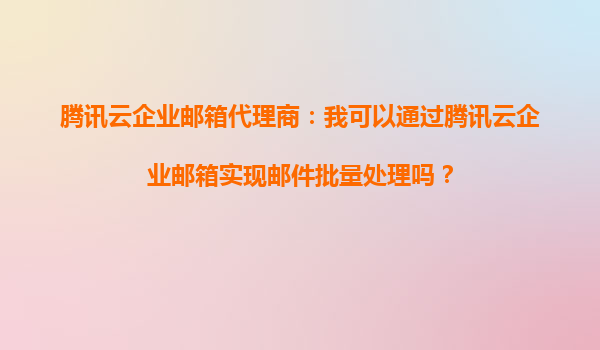腾讯云企业邮箱代理商:如何通过腾讯云企业邮箱实现邮件批量处理?