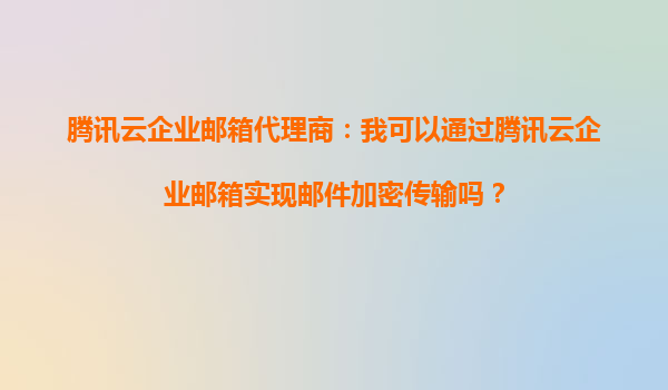 腾讯云企业邮箱代理商:我可以通过腾讯云企业邮箱实现邮件加密传输吗?