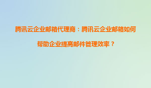 腾讯云企业邮箱代理商:腾讯云企业邮箱如何帮助企业提高邮件管理效率?