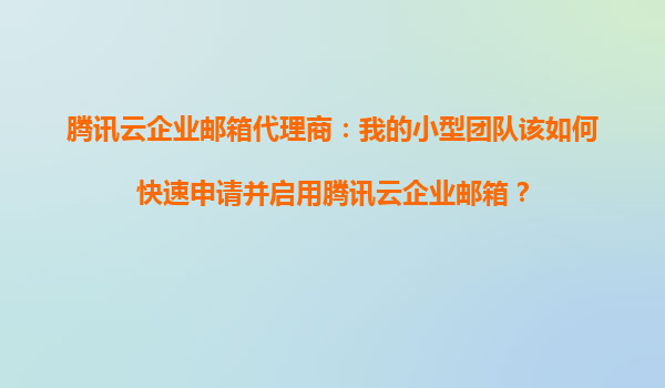 腾讯云企业邮箱代理商:我的小型团队该如何快速申请并启用腾讯云企业邮箱?