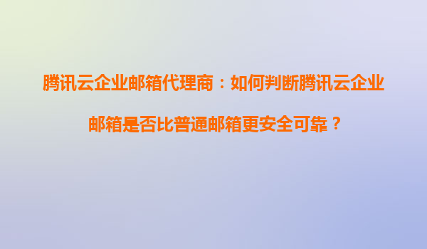 腾讯云企业邮箱代理商:如何判断腾讯云企业邮箱是否比普通邮箱更安全可靠?