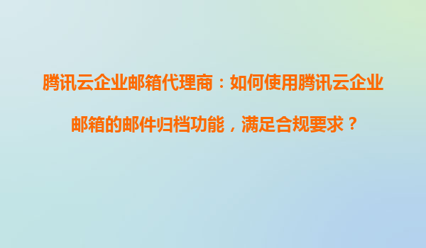 腾讯云企业邮箱代理商:如何使用腾讯云企业邮箱的邮件归档功能,满足合规要求