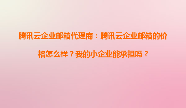 腾讯云企业邮箱代理商:腾讯云企业邮箱的价格怎么样?我的小企业能承担吗?