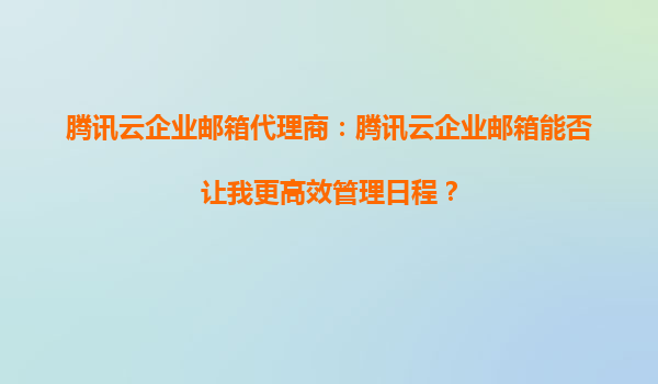 腾讯云企业邮箱代理商:腾讯云企业邮箱能否让我更高效管理日程? 在当今快节奏的商业环境中,高效的时间管理和日程安排是企业成功的关键因素之一。腾讯云企业邮箱作为一款专业的企业级邮箱解决方案,不仅提供了...