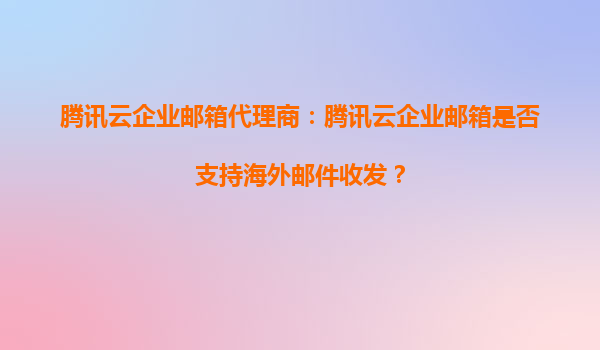 腾讯云企业邮箱代理商解析:腾讯云企业邮箱是否支持海外邮件收发? 一、腾讯云企业邮箱海外邮件收发能力详解 作为国内领先的企业邮箱服务商,腾讯云企业邮箱基于全球化的基础设施布局,已实现稳定的海外邮件收...