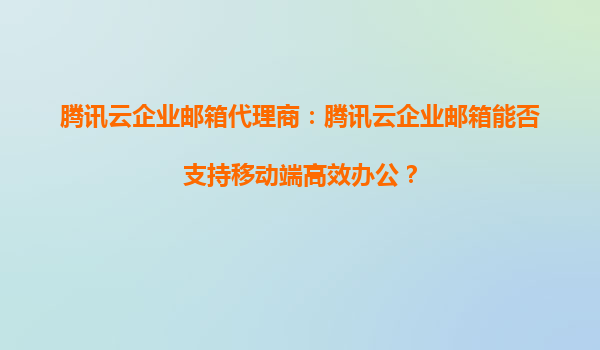 2025-09-26腾讯云企业邮箱代理商:腾讯云企业邮箱能否支持移动端高效办公? 随着移动互联网的普及,移动办公已成为现代企业不可或缺的一部分。腾讯云企业邮箱作为一款专业的企业邮箱服务,不仅提供了稳定可靠的邮件收发功...