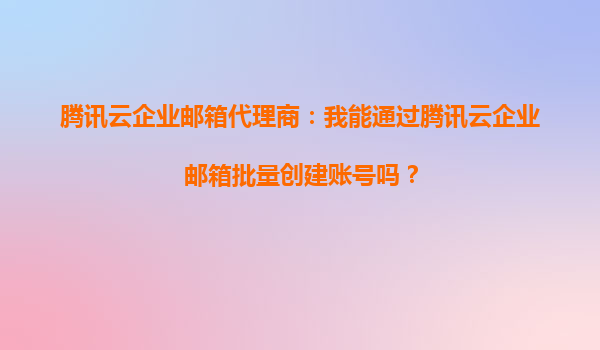 2025-09-26腾讯云企业邮箱代理商:我能通过腾讯云企业邮箱批量创建账号吗? 一、腾讯云企业邮箱批量创建账号功能 作为腾讯云企业邮箱的代理商,许多客户经常询问:“能否通过腾讯云企业邮箱批量创建账号?”答案是肯...