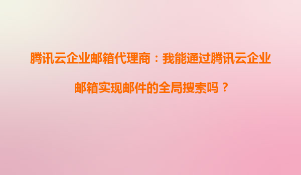 2025-09-25腾讯云企业邮箱代理商:我能通过腾讯云企业邮箱实现邮件的全局搜索吗? 一、腾讯云企业邮箱的全局搜索功能解析 腾讯云企业邮箱作为一款专业的企业级邮件服务,提供了强大的邮件管理功能...