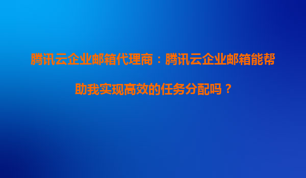 2025-09-25腾讯云企业邮箱代理商:腾讯云企业邮箱如何助力企业高效任务分配? 一、企业任务分配的痛点与需求 在企业管理中,任务分配是日常运营的核心环节。然而,传统方...
