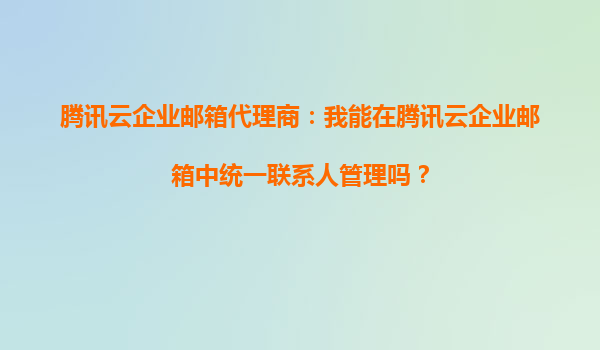 2025-09-25腾讯云企业邮箱代理商:我能在腾讯云企业邮箱中统一联系人管理吗? 一、腾讯云企业邮箱的统一联系人管理功能 作为腾讯云企业邮箱代理商,我们经常收到客户关于联系人管理的咨询。腾讯云企业邮箱确实提供了...