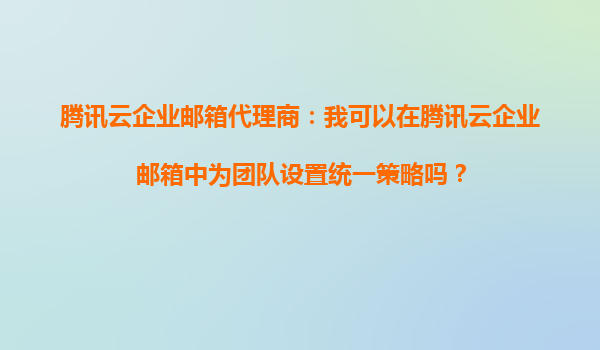 2025-09-25腾讯云企业邮箱代理商:如何为团队设置统一策略? 一、腾讯云企业邮箱的核心优势 腾讯云企业邮箱是基于腾讯多年邮件服务经验打造的企业级邮箱解决方案,具备以下核心优势: 高安全性...