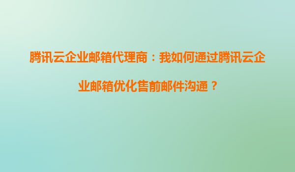 2025-09-25腾讯云企业邮箱代理商:如何通过腾讯云企业邮箱优化售前邮件沟通 一、腾讯云企业邮箱的核心优势 腾讯云企业邮箱作为国内领先的企业级邮箱服务,凭借腾讯强大的技术实力和生态资源,为企业客户提供了以下核...
