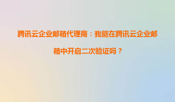 腾讯云企业邮箱代理商:开启二次验证功能详解 一、腾讯云企业邮箱的二次验证功能 作为腾讯云企业邮箱代理商,我们经常收到客户的咨询:"我能在腾讯云企业邮箱中开启二次验证吗?"答案是肯定的!腾讯云企业...