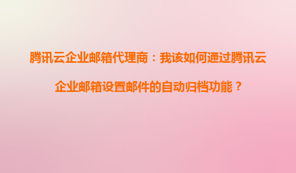 2025-09-18腾讯云企业邮箱代理商指南:如何设置邮件自动归档功能 一、为何选择腾讯云企业邮箱? 作为国内领先的云服务提供商,腾讯云企业邮箱凭借以下核心优势,成为企业高效沟通的...