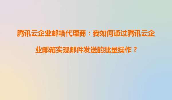 腾讯云企业邮箱代理商指南:如何高效实现邮件批量操作 一、腾讯云企业邮箱的核心优势 作为国内领先的企业级邮箱服务,腾讯云企业邮箱凭借以下特点成为企业通信的首选: ...