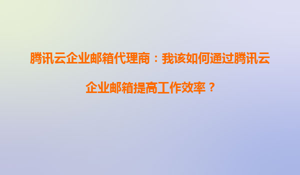 2025-09-16腾讯云企业邮箱代理商:如何通过腾讯云企业邮箱提高工作效率? 一、腾讯云企业邮箱的核心优势 作为企业级邮箱服务,腾讯云企业邮箱凭借以下核心能力赋能企业高效协作: ...