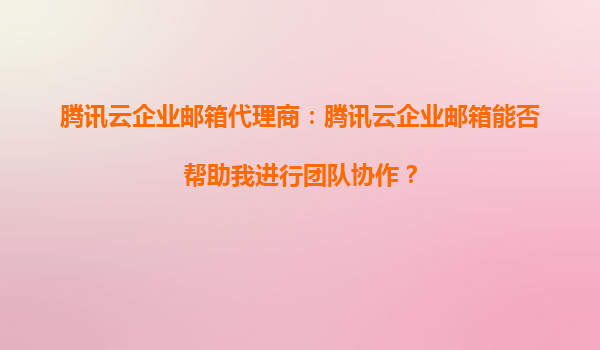 2025-09-16腾讯云企业邮箱代理商:腾讯云企业邮箱能否帮助我进行团队协作? 随着企业数字化转型的深入,团队协作效率成为企业成功的关键因素之一。腾讯云企业邮箱作为一款专业的企业级邮件服务,不仅提供了稳定的邮件收发...