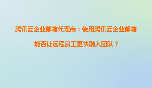 2025-09-16腾讯云企业邮箱代理商:使用腾讯云企业邮箱能否让远程员工更快融入团队? 1.引言:远程协作的挑战与机遇 随着远程办公的普及,如何让分散各地的员工高效协同、快速融入团队成为企业管理的核心议...