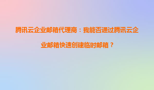 2025-09-16腾讯云企业邮箱代理商:如何通过腾讯云企业邮箱快速创建临时邮箱? 引言 在当今数字化办公环境中,企业邮箱不仅是沟通的重要工具,更是公司形象和效率的体现。腾讯云企业邮箱凭借其强大的功能和灵活的部署...