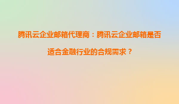 2025-09-16腾讯云企业邮箱代理商:腾讯云企业邮箱是否适合金融行业的合规需求? 金融行业的严苛合规要求 金融行业因其业务的特殊性和敏感性,对数据安全、隐私保护和信息管控有着极高的要求。各国监管...