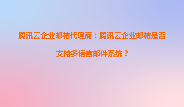 2025-09-16腾讯云企业邮箱多语言支持能力解析 全球化企业的沟通基石 在全球化商业环境中,腾讯云企业邮箱作为专业的企业级邮件服务平台,全面支持UTF-8编码标准,可完美显示中、英、日、韩、法、德等主流语言的邮件内容。无论...