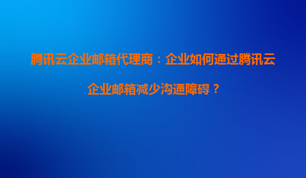 2025-09-16腾讯云企业邮箱代理商:企业如何通过腾讯云企业邮箱减少沟通障碍? 在现代商业环境中,高效的沟通是企业成功的基石之一。然而,许多企业仍面临邮件管理混乱、信息传递延迟、安全性不足等问题,导致沟通障碍频发...
