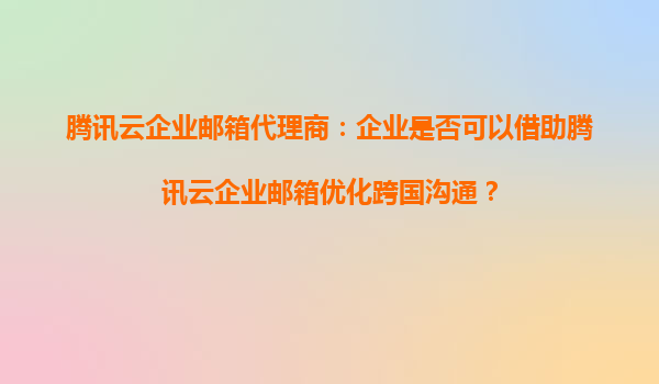 2025-09-16腾讯云企业邮箱代理商:企业是否可以借助腾讯云企业邮箱优化跨国沟通? 引言 随着全球化趋势的加剧,越来越多的企业开始拓展海外市场,跨国沟通成为企业日常运...