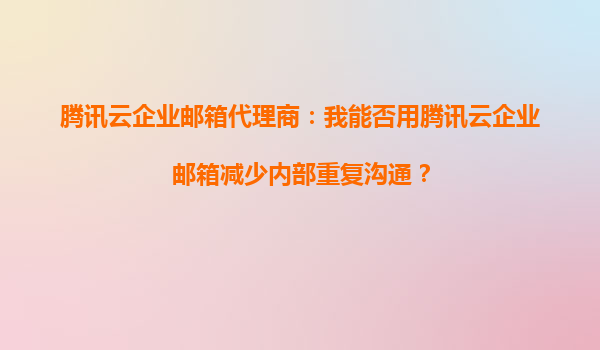 2025-09-16腾讯云企业邮箱代理商:如何用企业邮箱减少内部重复沟通? 一、企业内部沟通的痛点 在快节奏的现代办公环境中,企业内部沟通效率直接影响团队协作和生产力。许...