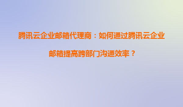 2025-09-16腾讯云企业邮箱代理商:如何通过腾讯云企业邮箱提高跨部门沟通效率? 一、引言 在当今快节奏的商业环境中,高效的跨部门沟通是企业成功的关键之一。无论是项目...