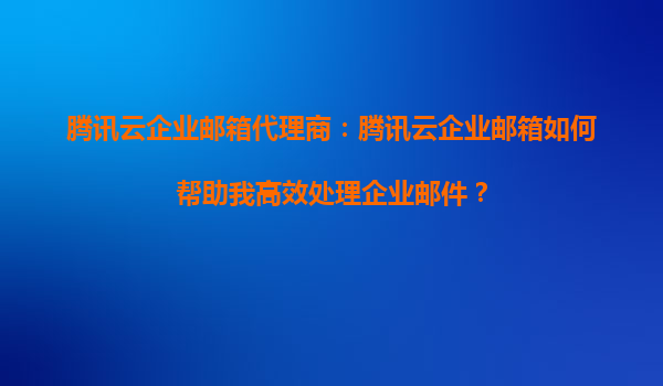 2025-09-16腾讯云企业邮箱代理商:腾讯云企业邮箱如何帮助我高效处理企业邮件? 一、腾讯云企业邮箱的核心优势 腾讯云企业邮箱作为腾讯云生态的重要组成部分,依托腾讯强大的技术能力和丰富的企业服务经验,为...