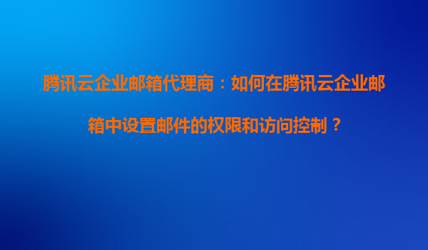 2025-09-16腾讯云企业邮箱代理商:如何在腾讯云企业邮箱中设置邮件的权限和访问控制? 一、腾讯云企业邮箱的核心优势 腾讯云企业邮箱作为国内领先的企业级邮件服务,依托腾讯强大的技术实力和生态体系,具备以下...